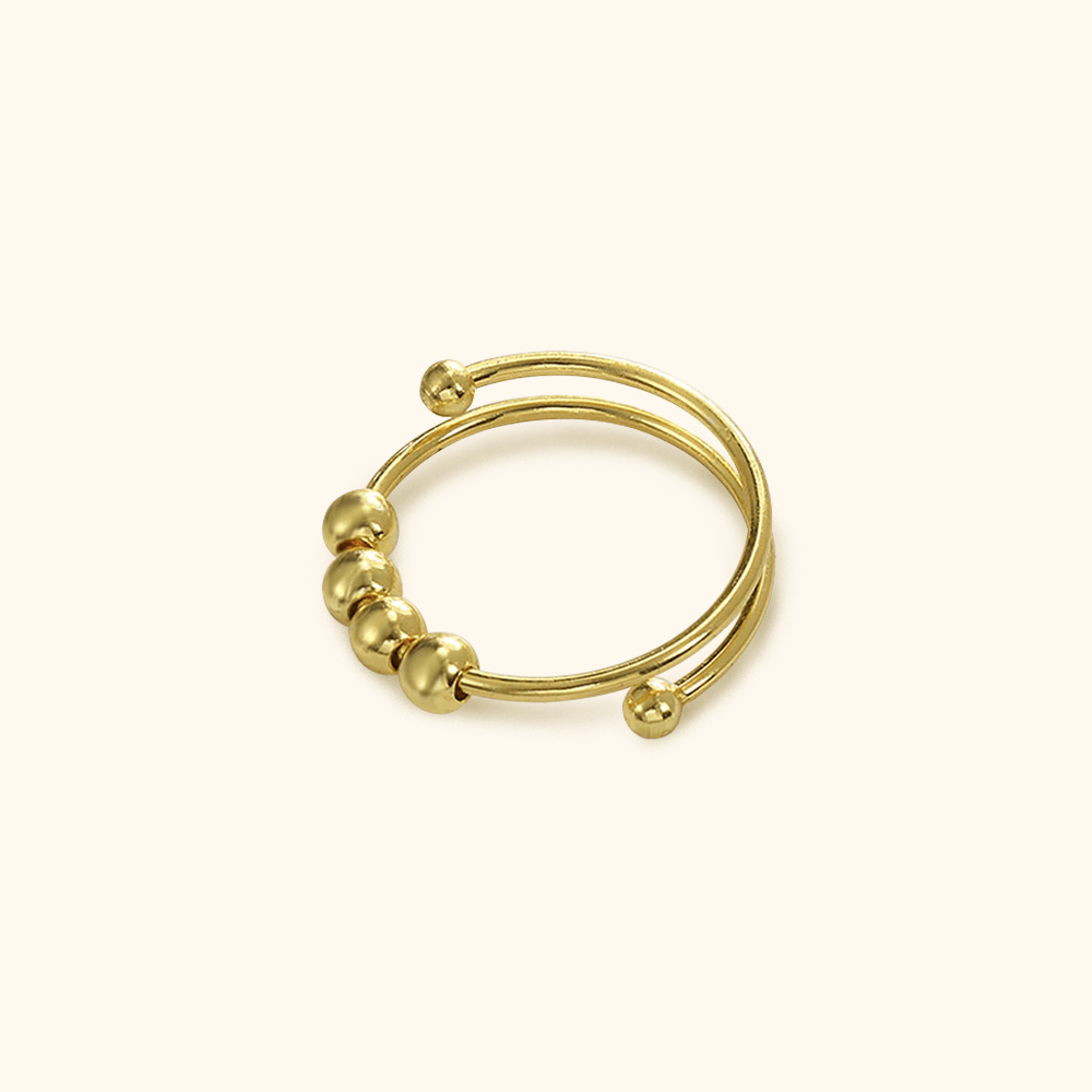 This is the perfect ring to help you with anxiety, made with movable beads that slide and twist on the wire. You can subtly move while still maintaining style. This versatile design can be worn however you like: knee ring, midi ring, thumb ring, etc.