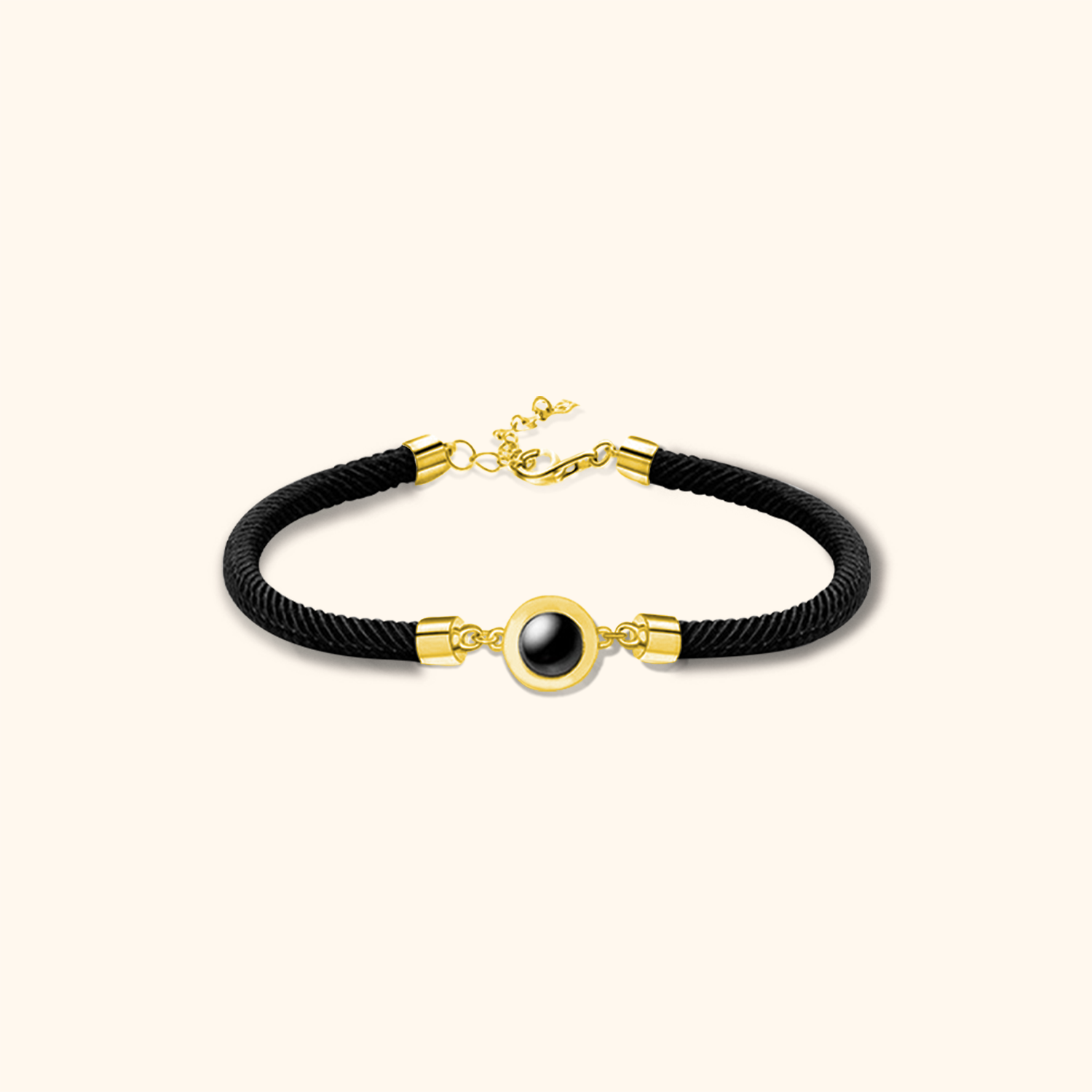 Elevate your style and keep cherished memories close with our Elegant Essence Projection Bracelet. This elegant bracelet features a round projection charm that can be personalized with your favorite photo. But the real magic happens when you look inside, as it projects your photo with breathtaking clarity, creating a unique and unforgettable piece of jewelry.