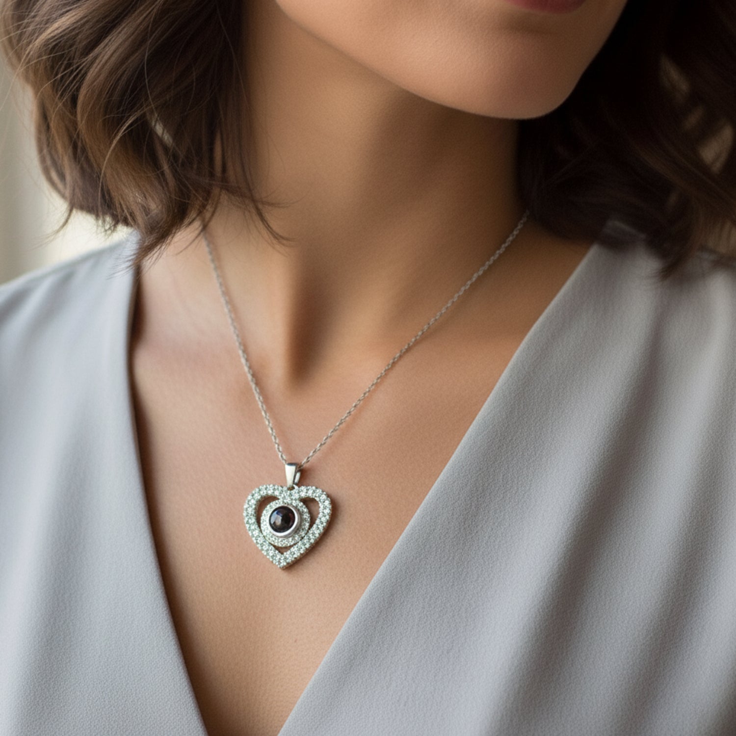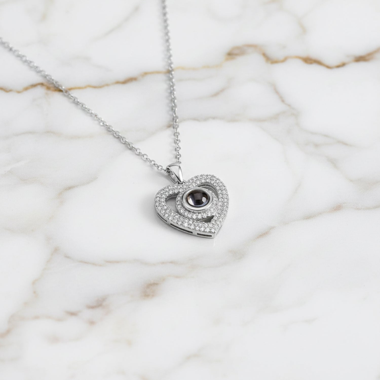 Celebrate love, friendship, and special memories with the Emmamour Engraved Pave Photo Heart Necklace. This elegant necklace features a sparkling heart necklace surrounded by dazzling pavé stones that shimmer beautifully in every light. Add your favorite photo and your loved one’s picture to make it truly yours. It’s more than jewelry.