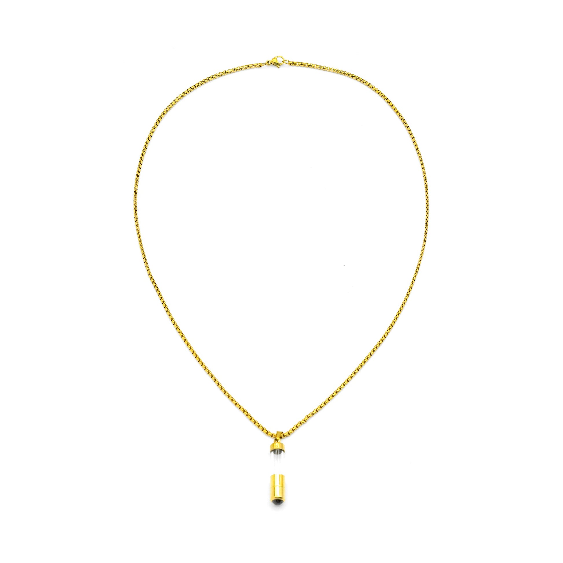 Introducing our Capsule Design Projection Necklace, a unique and elegant way to keep your cherished memories close to your heart. This necklace features a capsule-like design that allows you to store treasured items such as sand from a special beach, ashes of a loved one, or fur from your beloved pet. Alongside these precious keepsakes, the projection bead allows you to include photos, making it a deeply personal accessory.
