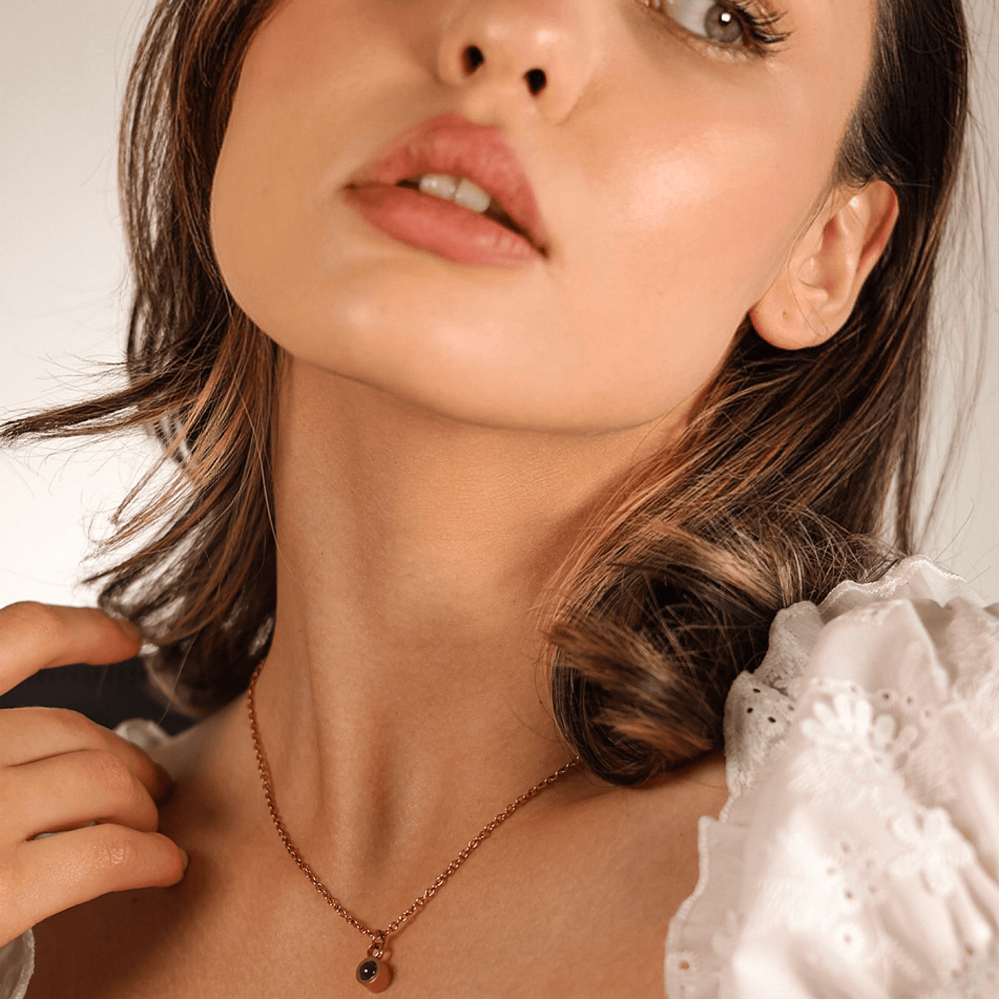 Available in gold, rose gold and silver, this necklace effortlessly complements a variety of styles. Its minimalist yet striking design ensures it can be the perfect accompaniment to any outfit, while retaining a deep personal meaning. This necklace is more than just an accessory; it is a tangible keepsake, a reminder of a special moment or person, and an exceptional gift for loved ones or for yourself.