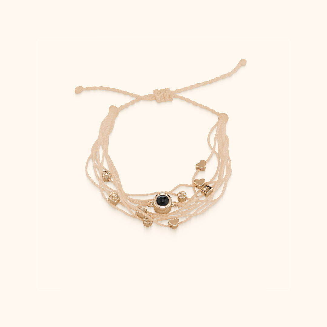 The Personalized Love Charms Photo Bracelet is a meaningful tribute to the power and depth of love. This stunning bracelet captures a personal photo in a charm, creating an intimate bond with the piece of jewelry. The strength of this bond is matched by the premium and durable strings from which the bracelet is made, embodying the enduring nature of love.