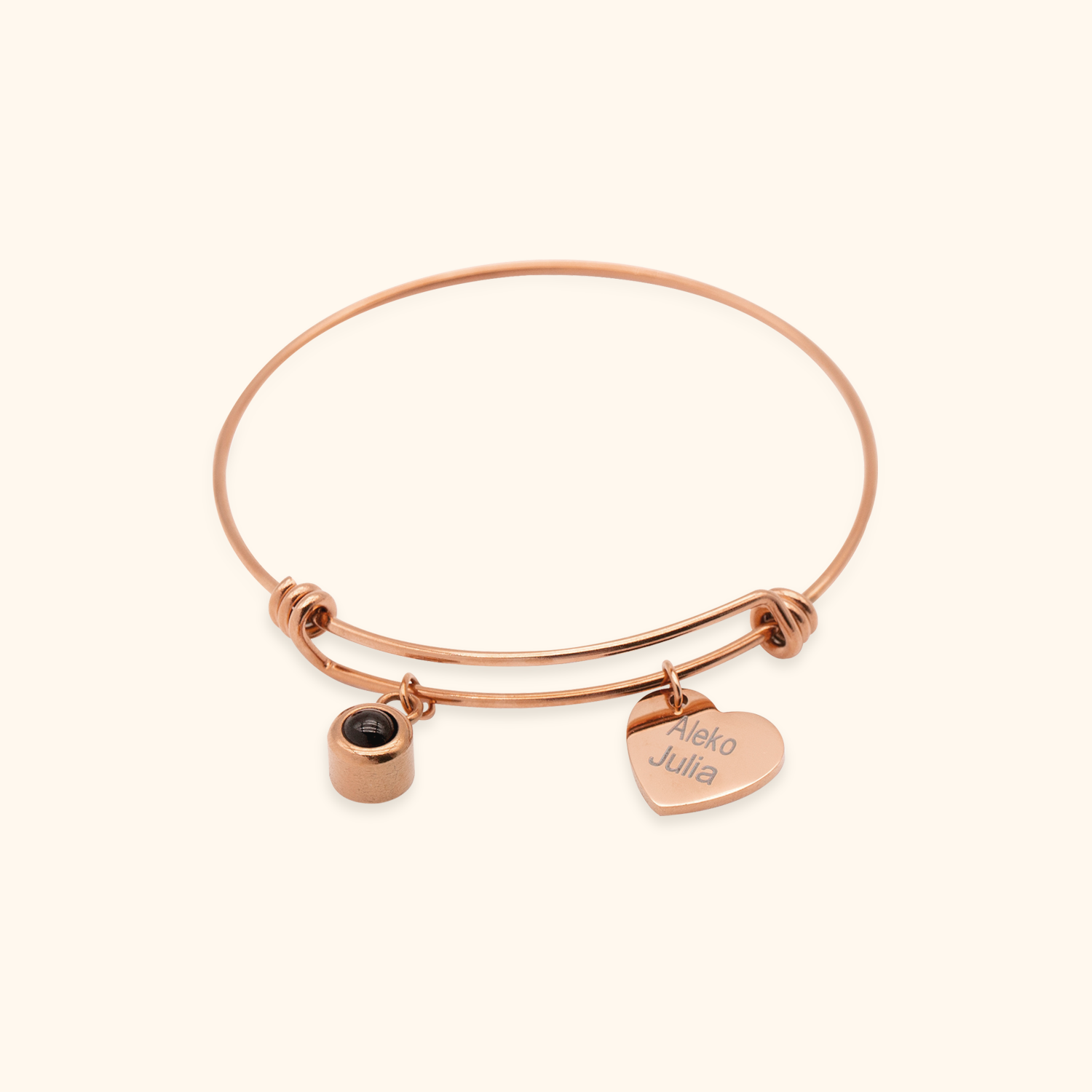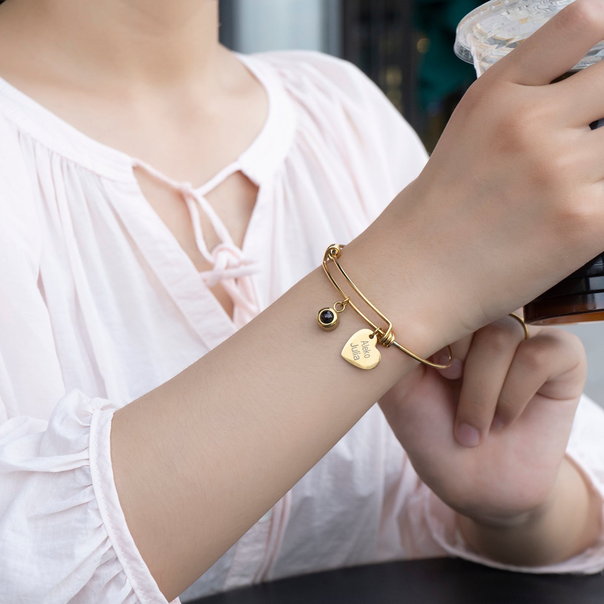The Personalized Name Charm Photo Projection Bracelet is a testament to the bond between two people, captured in a timeless piece of jewelry. This beautiful bracelet features a special photo that you can provide yourself, making each piece as unique and precious as the memories it holds. Forged from high-quality stainless steel, this bracelet combines resilience with elegance.
