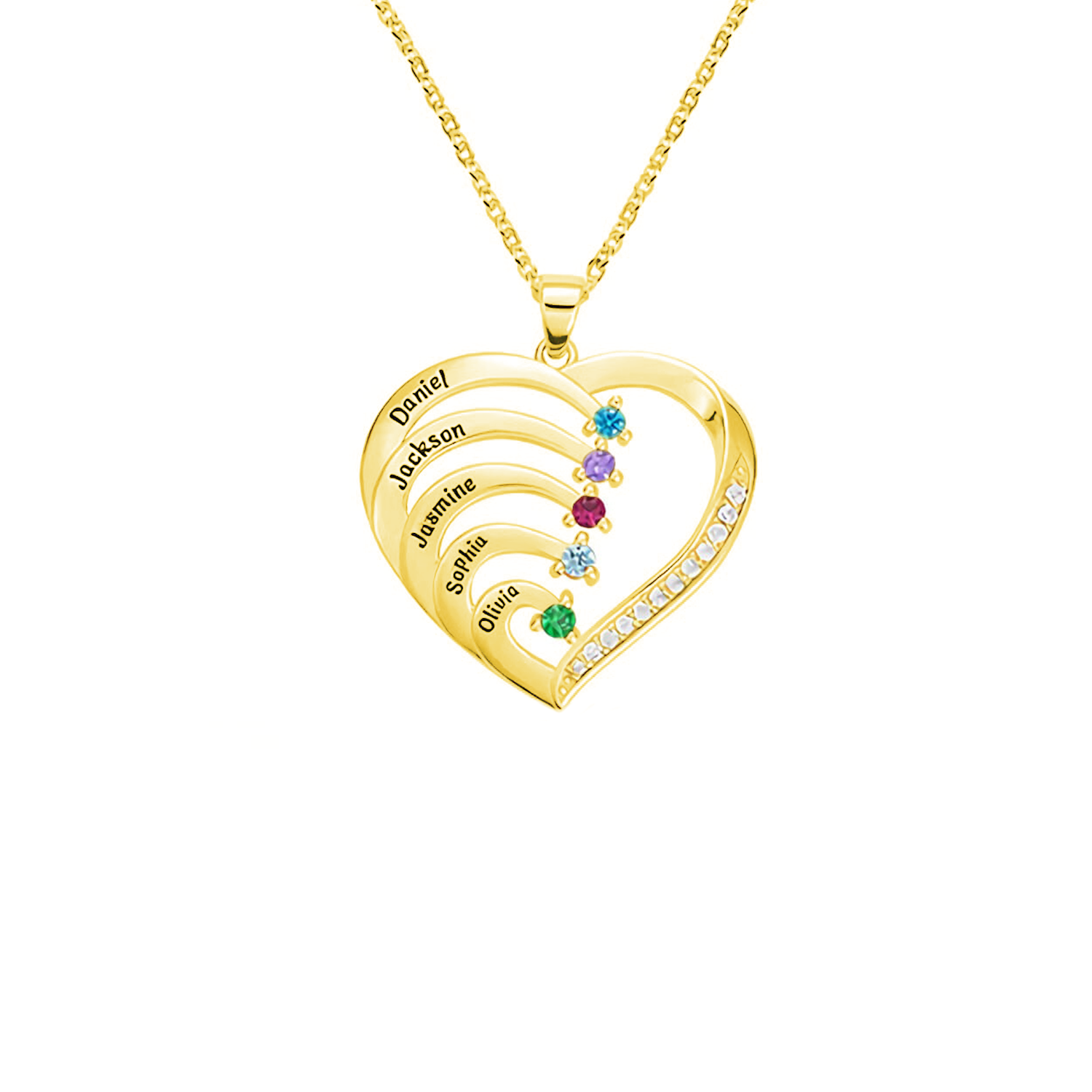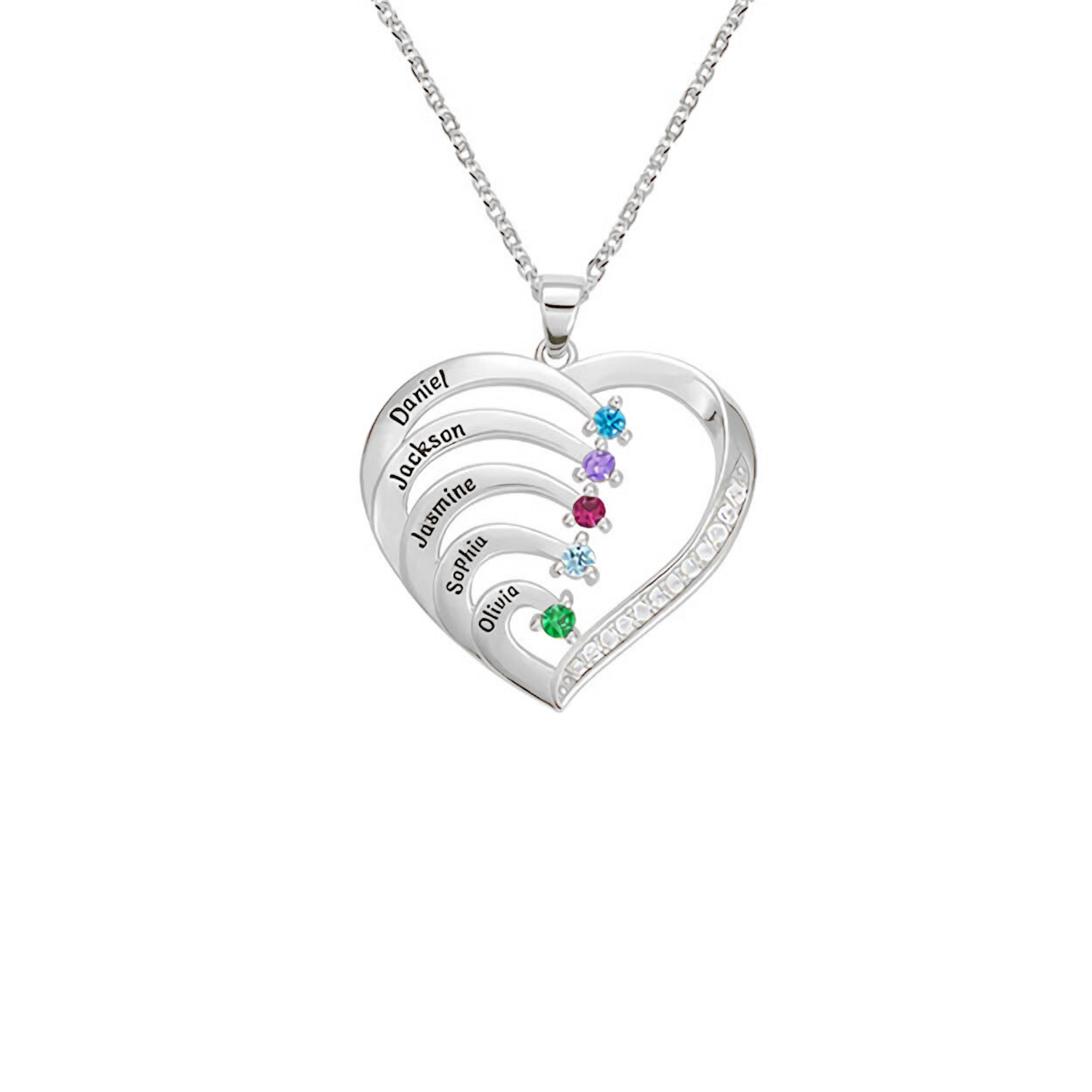 The Personalized Name Heart Birthstone Necklace is a symbol of love and affection, allowing you to carry the names of your loved ones close to your heart. This exquisite necklace features a heart-shaped pendant that can be engraved with up to 5 names, representing your beloved family or friends. Additionally, an optional birthstone adds a touch of personalization and meaning.